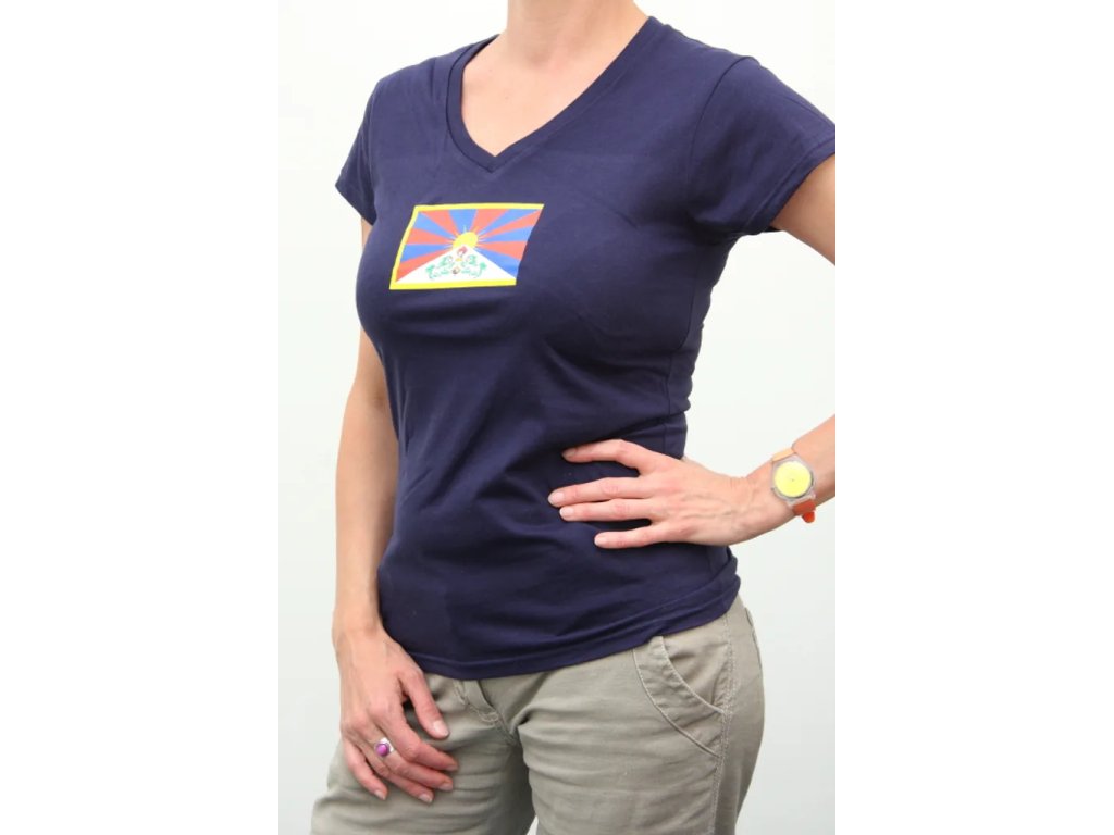 Bavlněné tričko s tibetskou vlajkou s výstřihem ve tvaru V
